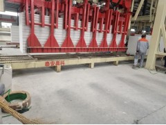 釜后打包设备组成:出釜子母摆渡车、成品吊具、掰板机、单模成品夹具、并垛链条机、双模旋转夹具、托盘发放机、链条输送机