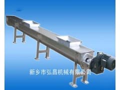 LS型螺旋输送机是利用旋转的螺旋将被输送的物料沿固定的机壳内推移而进行输送工作,头部及尾部轴承移至壳体外,吊轴承采用滑动轴承设有防尘密封装置,轴瓦一般采用粉末冶金,输送水泥采用毛毡轴瓦,吊轴和螺旋轴采用滑块连接。