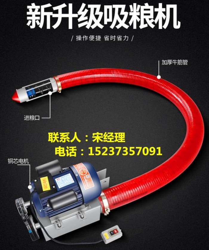 软管吸粮机在农场、码头、车站、大型粮库等的装车、卸车、补仓、出仓、翻仓、倒垛以及粮食加工、饲料加工和啤酒酿造等行业的生产工艺中的散装、散运、散卸的机械化作业起到便捷、实用的作用。