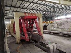 翻转吊机将坯体翻到切割平移车上后,墙板槽切割机两面切割后切出墙板槽,防裂槽切割机切出防裂槽,水平切割机切出墙板的厚度,竖直切割机切出墙板的长度,切割完成后由托坯吊机托出。