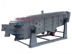 直线振动筛是双振动电机驱动。当两台振动电机做同步、反缶旋转时,其偏心块所产生的激振力在平行于电机轴线的方向相互抵消,在垂直于电机轴的方向叠为一合力,因此筛机的运动轨迹为一直线。两电机轴相对筛面有一倾角,在激振力和物料自重力的合力作用下,物料在筛面上被抛起跳跃式向前作直线运动,从而达到对物料进行筛选和分级的目的。适用于粒度在0.074-5mm、含水量小于70%、无粘性的各种干式粉状物料的筛分。*大给料粒度不大于10mm。