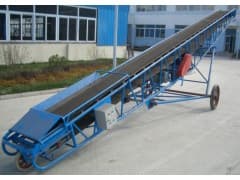 DY型可移动式皮带输送机是一种工效高,使用安全可靠,机动性好的连续输送装卸设备。主要用于装卸地点经常变更动的场所,如:港口、码头、车站、煤场、仓库、建筑工地、沙石料场、农场等,用来短途运输及装卸散料或单件重量100公斤以下的成件物品。DY型可移动式皮带输送机分为可升降型及不可升降型两大类,输送带的运行靠电动滚筒驱动,整机的升降与运行均为非机动。