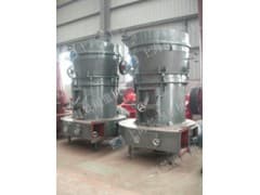 雷蒙磨粉机内,磨辊吊架上紧固有1000-1500公斤压力的高压弹簧。开始工作后磨辊围绕主轴旋转,并在高压弹簧与离心力的作用下,紧贴磨环滚动,其滚动压力逼同等动力条件下的雷蒙磨粉机高1.2倍,故产量大为提高。当被磨物料进入磨腔后,由铲刀铲起送入磨辊与磨环之间进行碾压,碾压后的粉磨随鼓风机的循环风带入分析机,合格细粉随气流进入旋风集粉器即为成品,大颗粒物料落回重磨。循环风返回鼓风机再重复以上过程,余风则进入袋式除尘器净化。当磨辊与磨环达到一定磨损后,调整高压弹簧长度,保持磨辊与磨环之间恒定碾压力。从而保证稳定的产量与细度。