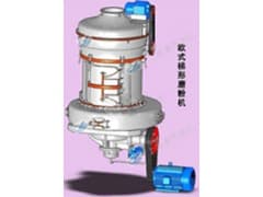 欧式磨粉机主机工作过程是通过锥齿轮整体转动装置带动中心轴转动,轴的上端联接着磨辊吊架,架上装有磨辊装置并形成摆动支点。磨辊装置不仅围绕中心轴回转,还围绕着磨环公转,磨辊本身因摩擦作用而自传。磨辊吊架下装有铲刀,其位置处于磨辊下端,铲刀与磨辊同转过程中吧物料抛起喂入磨辊磨环内,形成垫料层,该料层受磨辊旋转产生向外的离心力(即挤压力)将物料碾碎,由此而达到制粉目的。