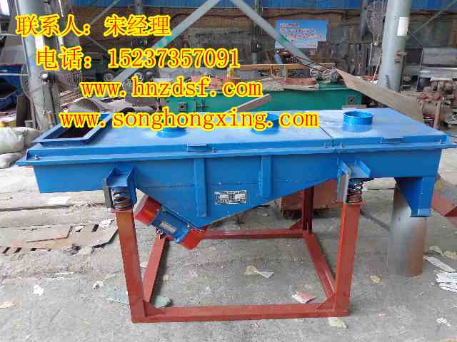 DZSF型系列直线筛式双振动电机驱动。当两台振动电机做同步、反向旋转时,其偏心块所产生的激振力在平行于电机轴线的方向相互抵消,在垂直于电机轴的方向叠为一合力,因此筛机的运动轨迹为一直线。两电机轴相对筛面有一倾角,在激振力和物料自重力的合力作用下,物料在筛面上被抛弃跳跃式向前做直线运动,从而达到对物料进行筛选和分级的目的。适用于粒度在0.074-5mm、含水量小于70%、无粘性的各种干式粉状物料的筛分。