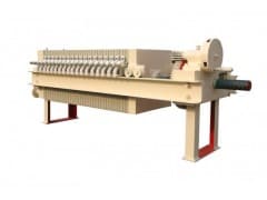 320型主要由三大部分组成,即:机架部分、过滤部分、压紧装置。工作时,转动手轮,通过小齿昏、大齿轮,带动丝杠推动压紧板,将位于压紧板和止推板之间的滤板和过滤介质(滤布)压紧,以保证带有工作压力的被过滤物料(料浆)在滤室内进行加压过滤。 (1)机架部分: 机架构成基础,用以支撑、连接其它部件。它主要由止推板、压紧 板、压紧部分和主梁组成。 (2)过滤部分: 是由以一定次序排列在主梁上的滤板和夹在滤板之间的过滤介质(滤布)组成,形成 一个个过滤单元(滤室)。 (3)压紧部分: 它是压滤机的动力装置,主要部件有小齿昏、大齿轮、丝杠等。 整机结构设计合理,性能稳定可靠,操作简单,维修方便,适用范围广,是悬浮液分离的理想设备。
