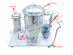 4、处理精度可选,装置有两个出口,一个出水口精度为20微米,另一个出水精度为1微米。清理机床集液槽底部的油泥油渣时,过滤精度只需20微米,这时从出水口1出水;当切削液有效基因小于1微米,而且需要将切削液再生设备净化再生出来的切削液进行更高精度处理时,再生后的切削液在进入清渣装置进行精度为1微米过滤处理,进一步清除微小粉末或微生物,这个时候从出水口2出水;