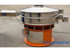 超声波振动筛是将220V、50Hz或110V、60Hz电能转化为18KHz的高频电能,输入超声换能器,将其变成18KHz机械振动,从而达到高效筛分和清网的目的,使超微细粉筛分成为易事。该系统在传统的旋振筛基础上在筛网上引入一个低振幅、高频率的超声波振动波(机械波),以改善超微细粉体的筛分性能。特别适合高附加值精细粉体的用户使用。